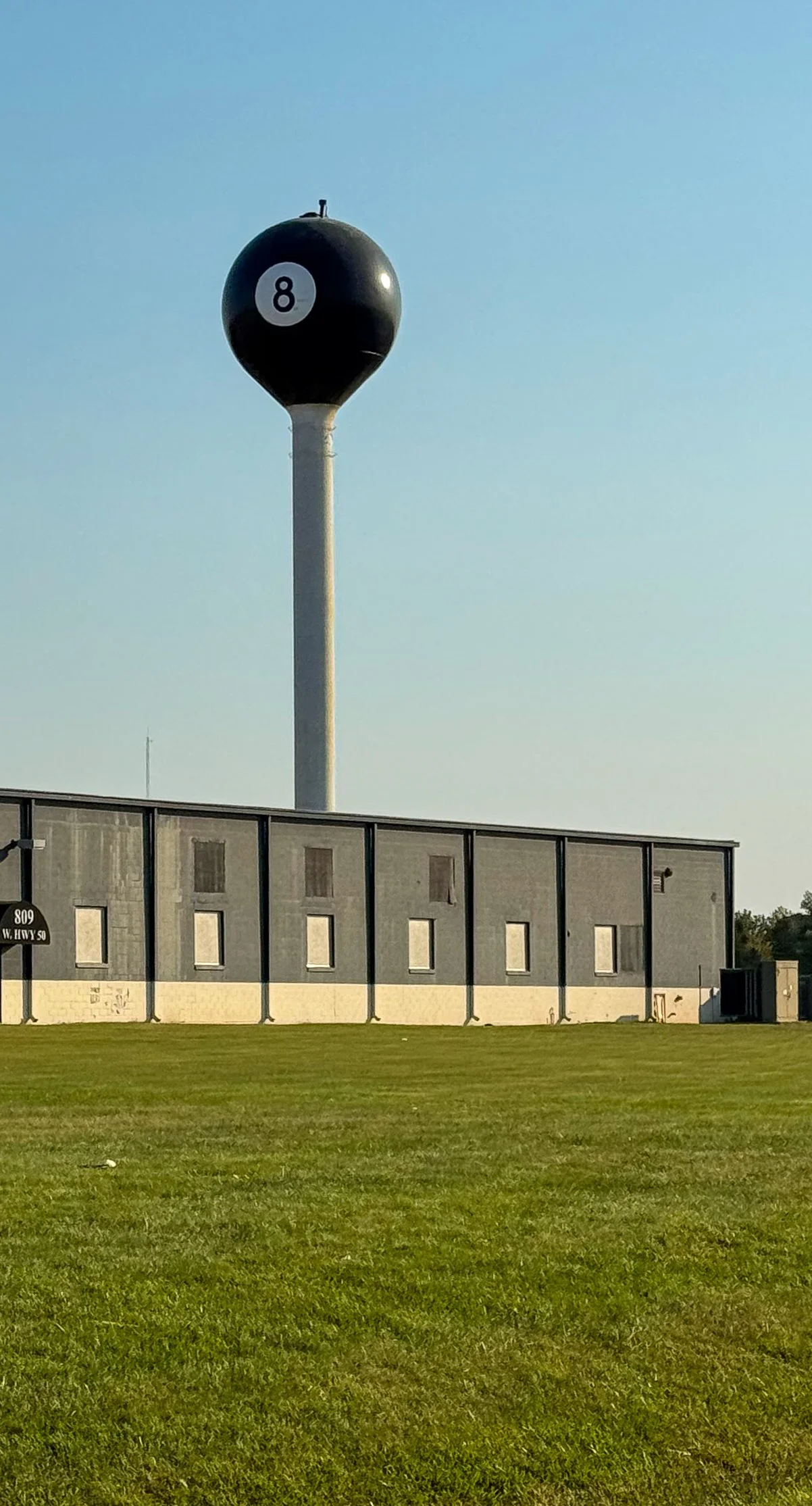 This water tower located in Tipton, Missouri is known as the "8-Ball Water Tower”. Its distinctive structure has been painted to resemble a black billiard ball, making it a quirky roadside attraction. The design pays homage to Tipton's history as the original home of the Fischer Manufacturing Company, which was a leading producer of pool tables and billiard equipment.